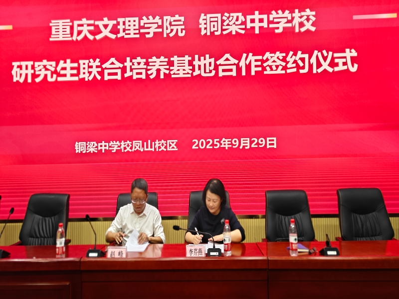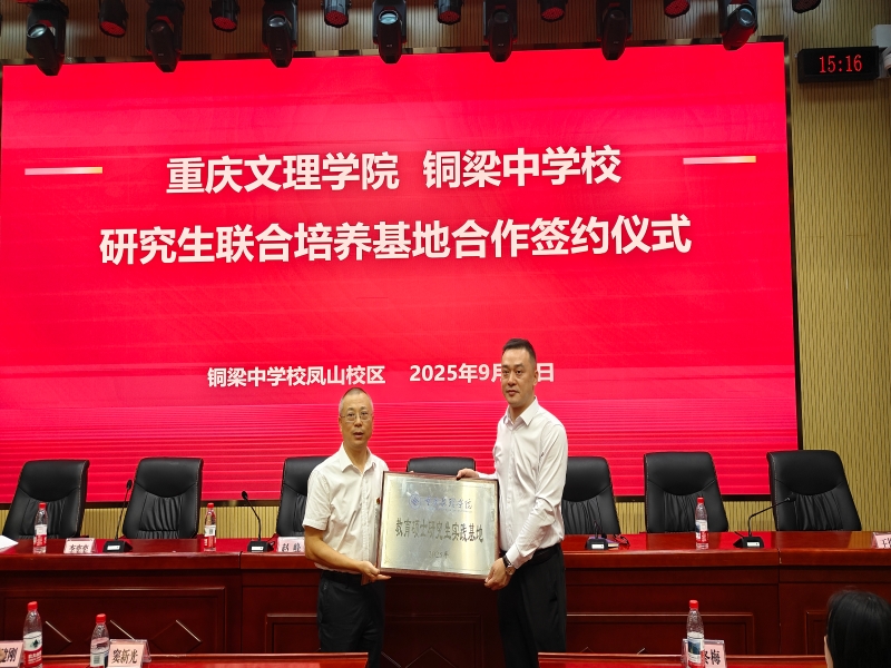 在签约仪式上,李奕奕代表铜梁中学郑重承诺,将全力配备优质师资资源,为研究生实践能力提升提供有力保障。樊汶樵在致辞中提出“双目标愿景”,一方面要将该基地建设成为重庆市级研究联合培养基地,另一方面要推动铜梁中学优秀教师成长为文理学院硕士生行业导师,同时期望基地能为学生提供更丰富的见习实践机会。随后,李芹燕与赵峰共同签署合作协议,樊汶樵为基地正式授牌。